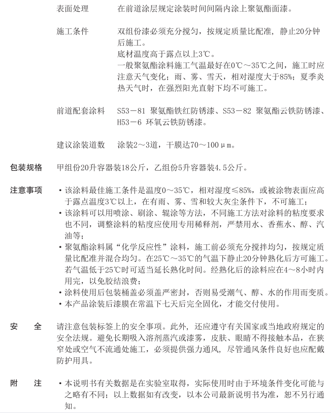 S52-40 聚氨酯面漆(户外型,双组份)